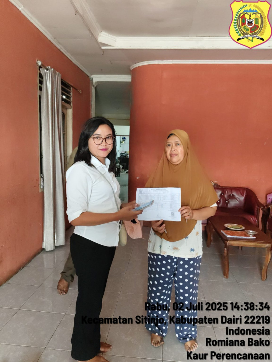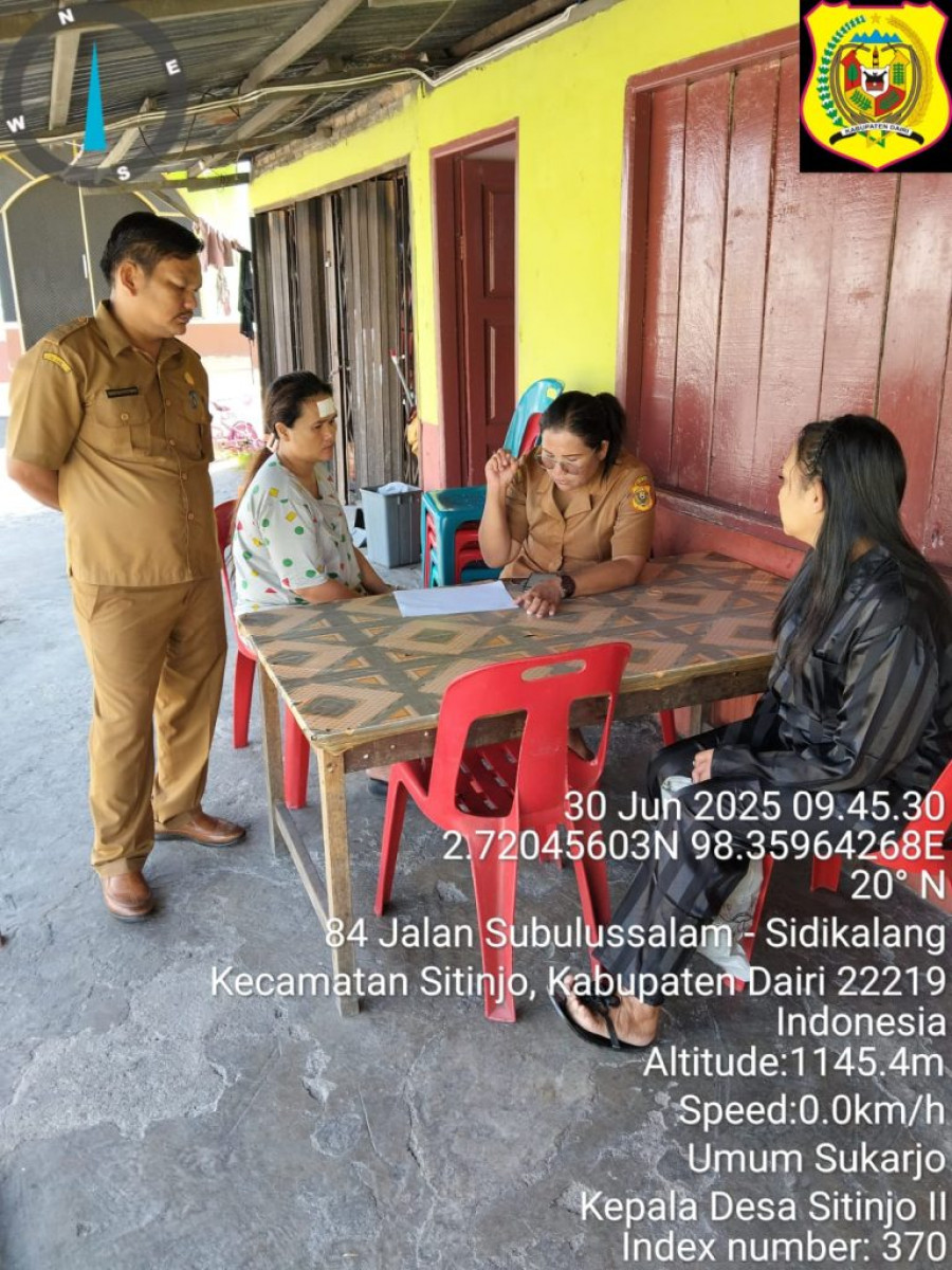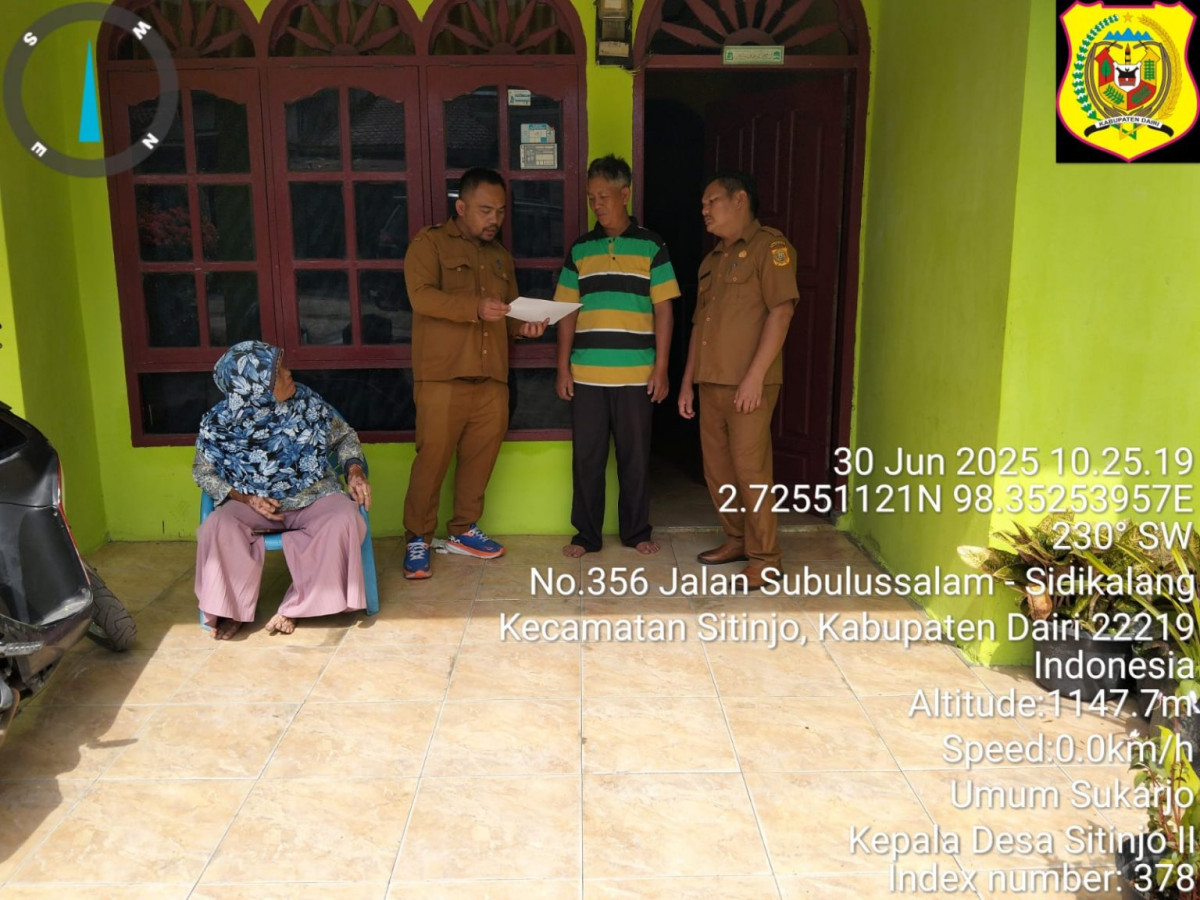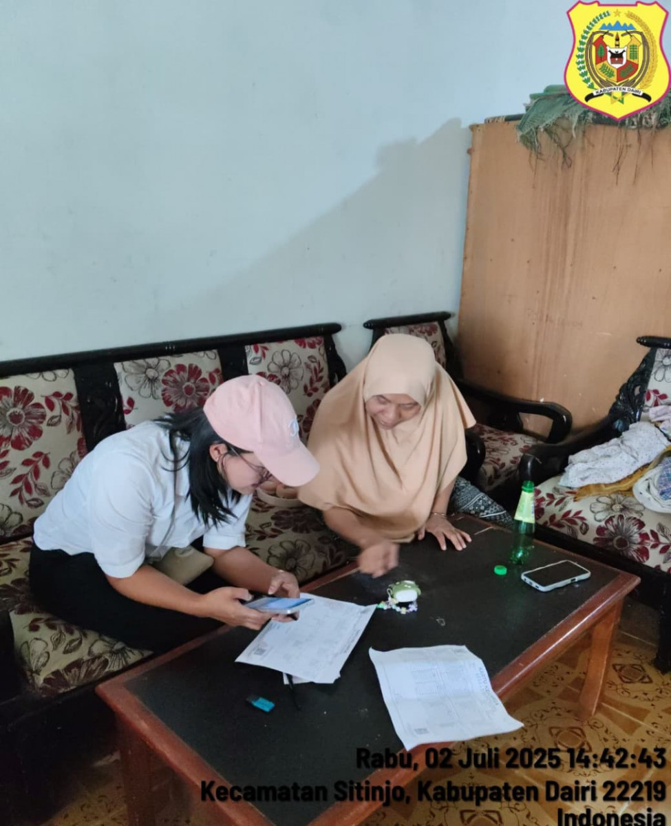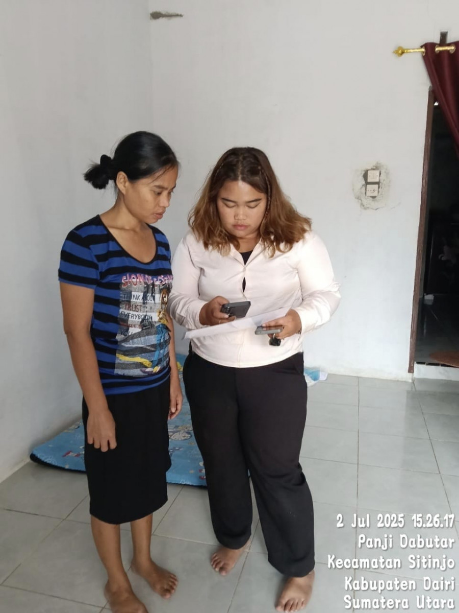 Proses pendataan di lapangan diawasi secara ketat oleh tim internal desa yang beranggotakan 3 orang. Selain itu, tim dari BPS Kabupaten Dairi juga turut serta mendampingi untuk memberikan arahan dan memastikan proses berjalan sesuai standar. Kepala Desa Sitinjo II, Bapak Umum Sukarjo, juga ikut dalam pengawasan ini, sekaligus memanfaatkannya sebagai momen untuk menyapa dan berdialog langsung dengan warga.