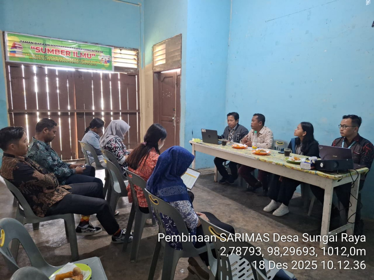 Diposting pada 18 Dec 2025Desa Sungai Raya menggelar kegiatan pembinaan pada Kamis, 18 Desember 2025, sebagai upaya meningkatkan kualitas pendataan dan pengelolaan informasi desa. Kegiatan ini dihadiri oleh Kepala Desa Sungai Raya beserta seluruh perangkat desa, serta tim pembina dari Badan Pusat Statistik (BPS) Kabupaten Dairi.